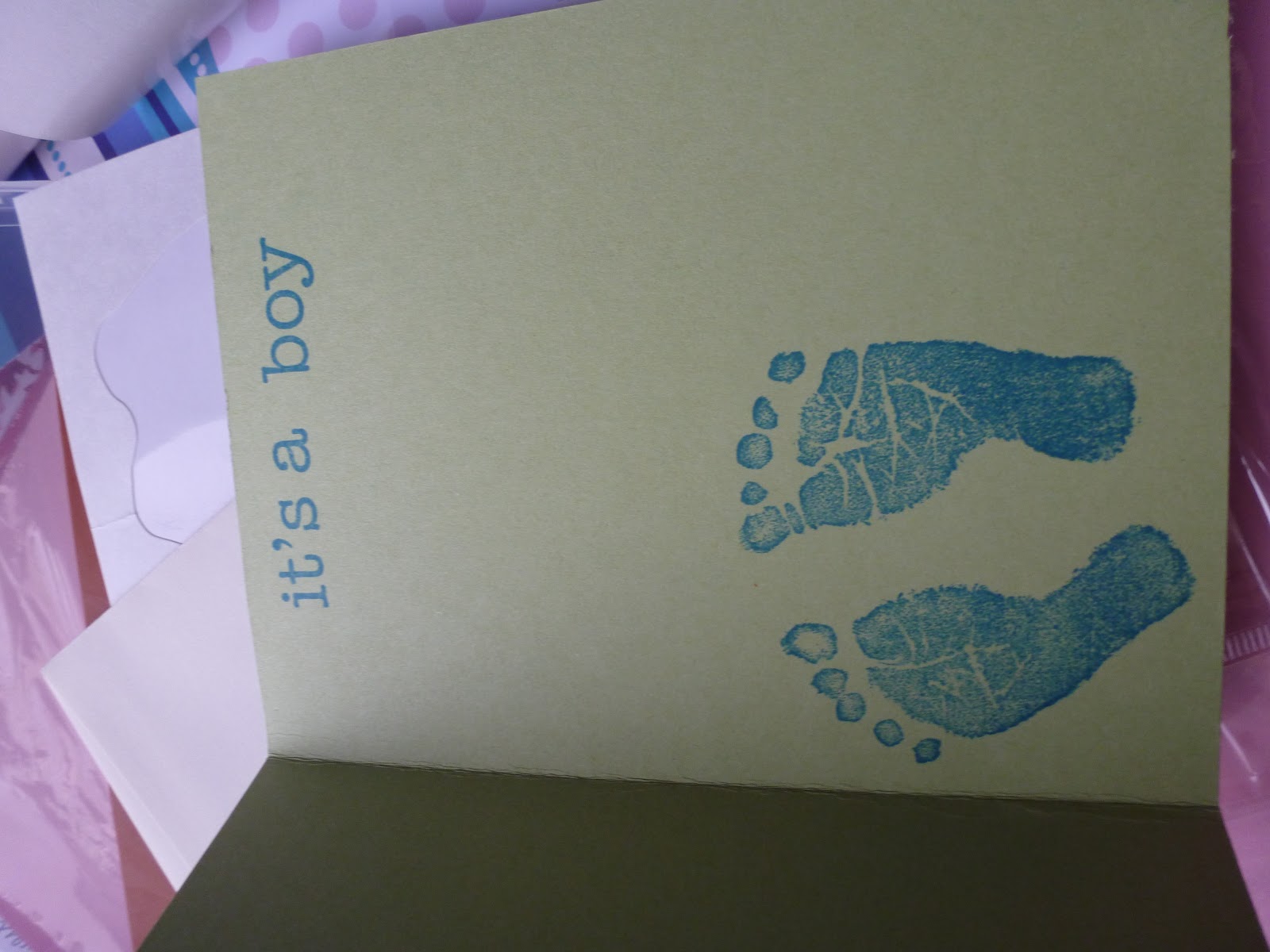 My Pink Stamper. The baby feet as well as the it's a boy sentiment are from the Baby set in the Stampin' Up Occasions Mini. I think it turned out super cute!!